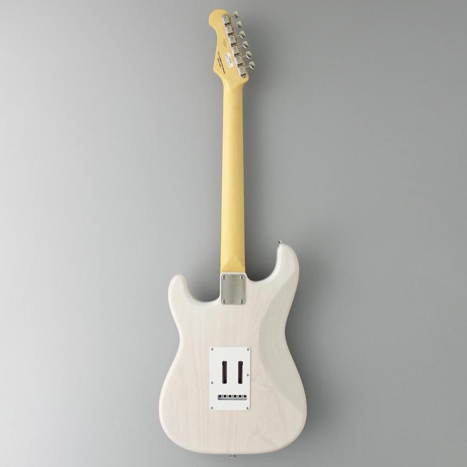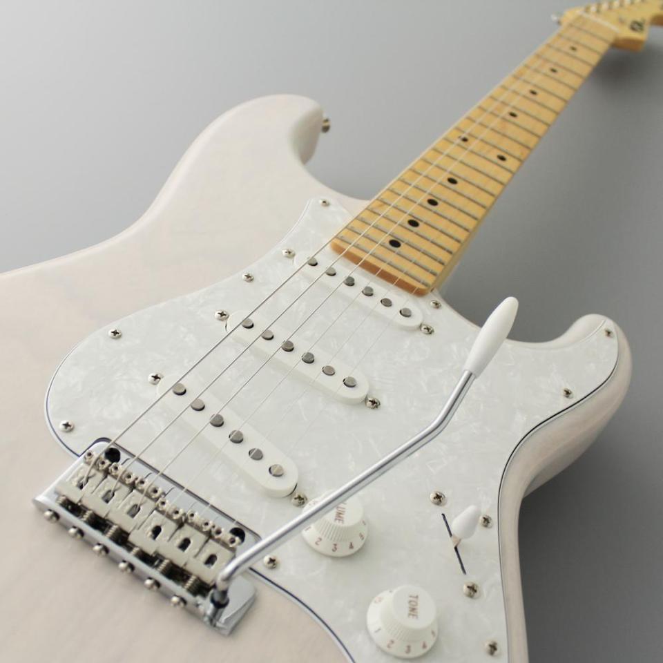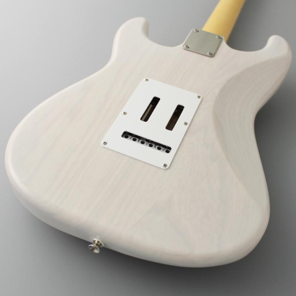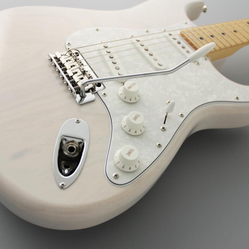 当モデルは、アッシュボディ、メイプル指板、3S配列、ホワイトブロンドカラーという組み合わせ。
