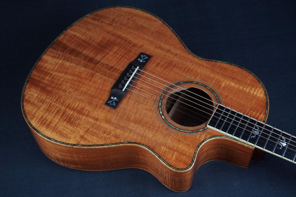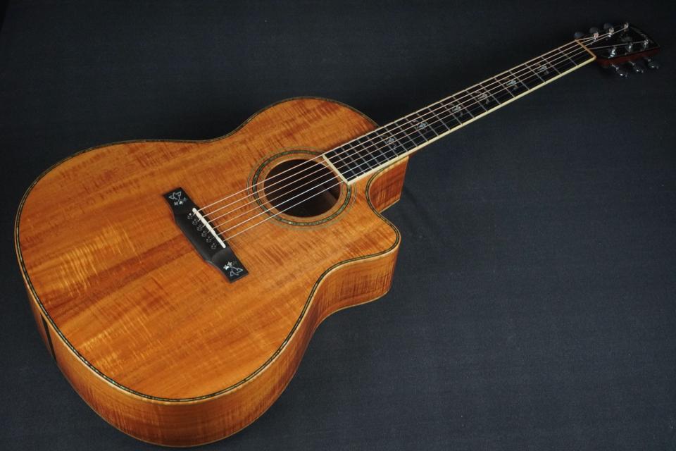 ボディがオールコアのウッドマテリアルで、コア材独特の中域の腰が強い伸びやかなトーンで、バランスの良いLスタイルでカッタウェイのボディ、そしてラリヴィー独特のシンメトリカルなXブレーシングから、オールコアのボディ材ではありますがバランス良くレンジ間の広い響きも持っております。