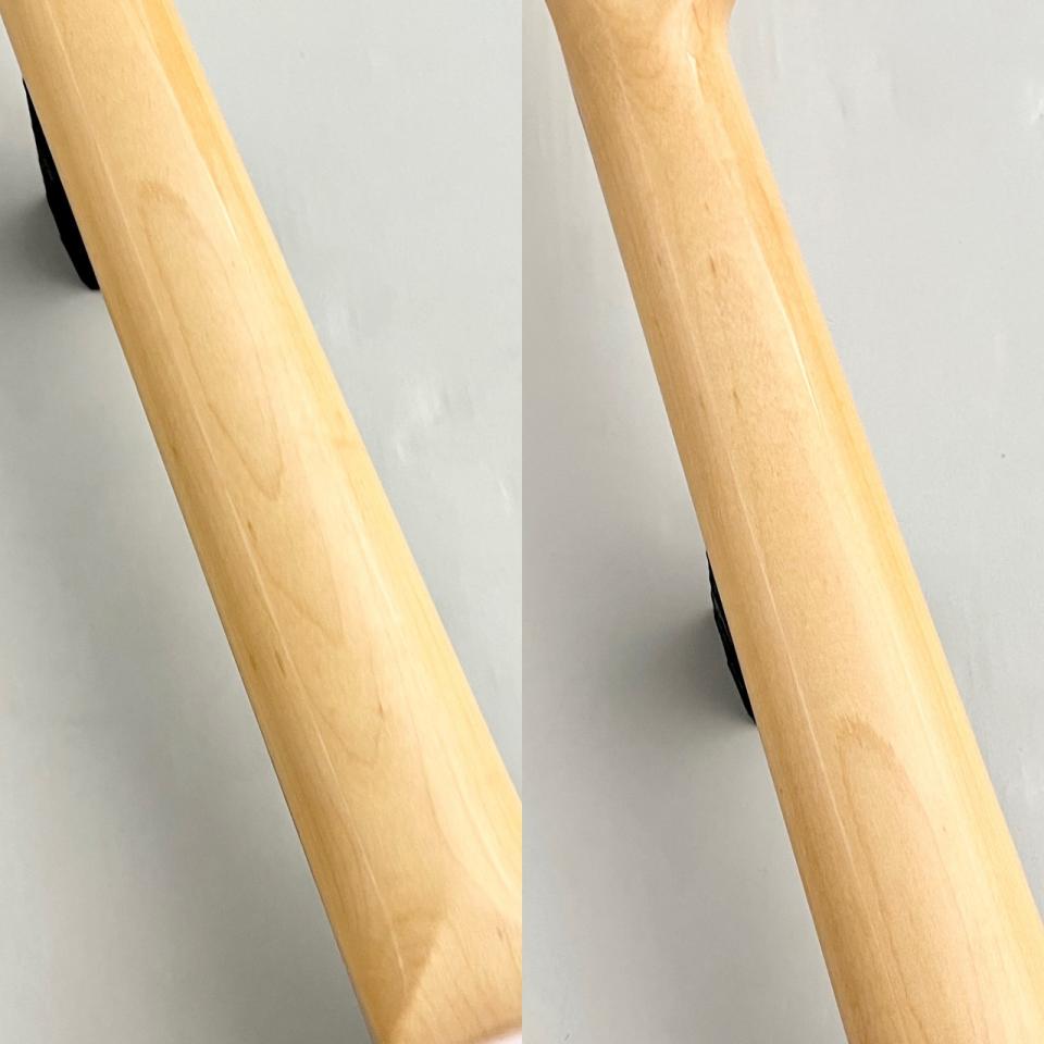 パッとみると淡いバーストフィニッシュですが、よく見ると細かなメタリックが吹かれ、キラッとした反射が得られるメタリックフィニッシュはギターに立体感を与えてくれます。