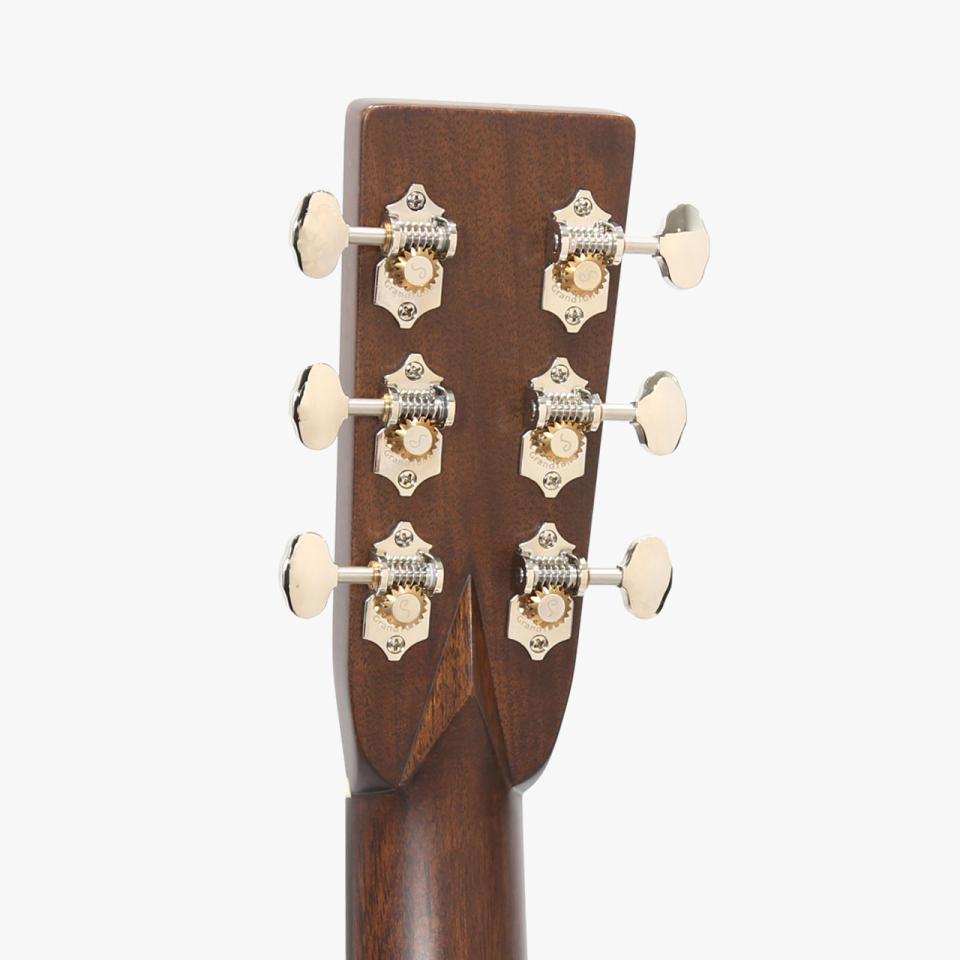 大容量のDボディに、トップ材には厳選されたシトカスプルース、サイド&バック材にも選りすぐりのインディアンローズウッドを使用し、ホンジュラスマホガニー材ネック、エボニー材指板&ブリッジ、44.5mmナット幅、647.7mmスケール、アイボロイドバインディング、スクエア&ダイアモンド指板インレイ、ジリコテ材による天神突板、シャーラー社のGrand Tuneペグと、妥協のないハイスペックな仕様となります。