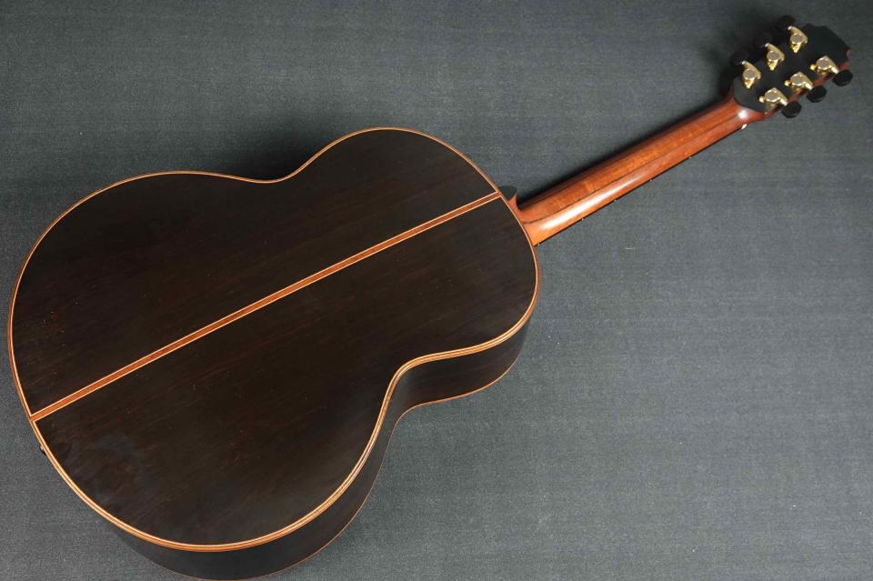 ローデンではカスタムショップと言える50シリーズで、バランスの良いサイズ感で人気の高いFスタイルのボディ、ウッドマテリアルにはトップ材にレアなシンカー・レッドウッド、サイド&バック材にはトーンウッドとして評価の高いアフリカン・ブラックウッドを用いた、渋くウッディな風合いの2015年製中古品です。