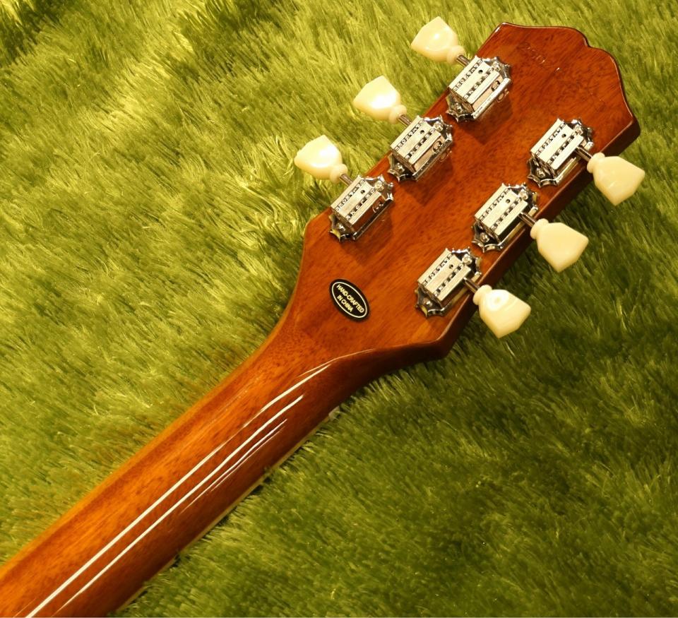 ローレル指板にはクラシカルなディッシュ・インレイが施され、カラマズー・ヘッドストックにはヴィンテージ・デラックス・チューナーを搭載。