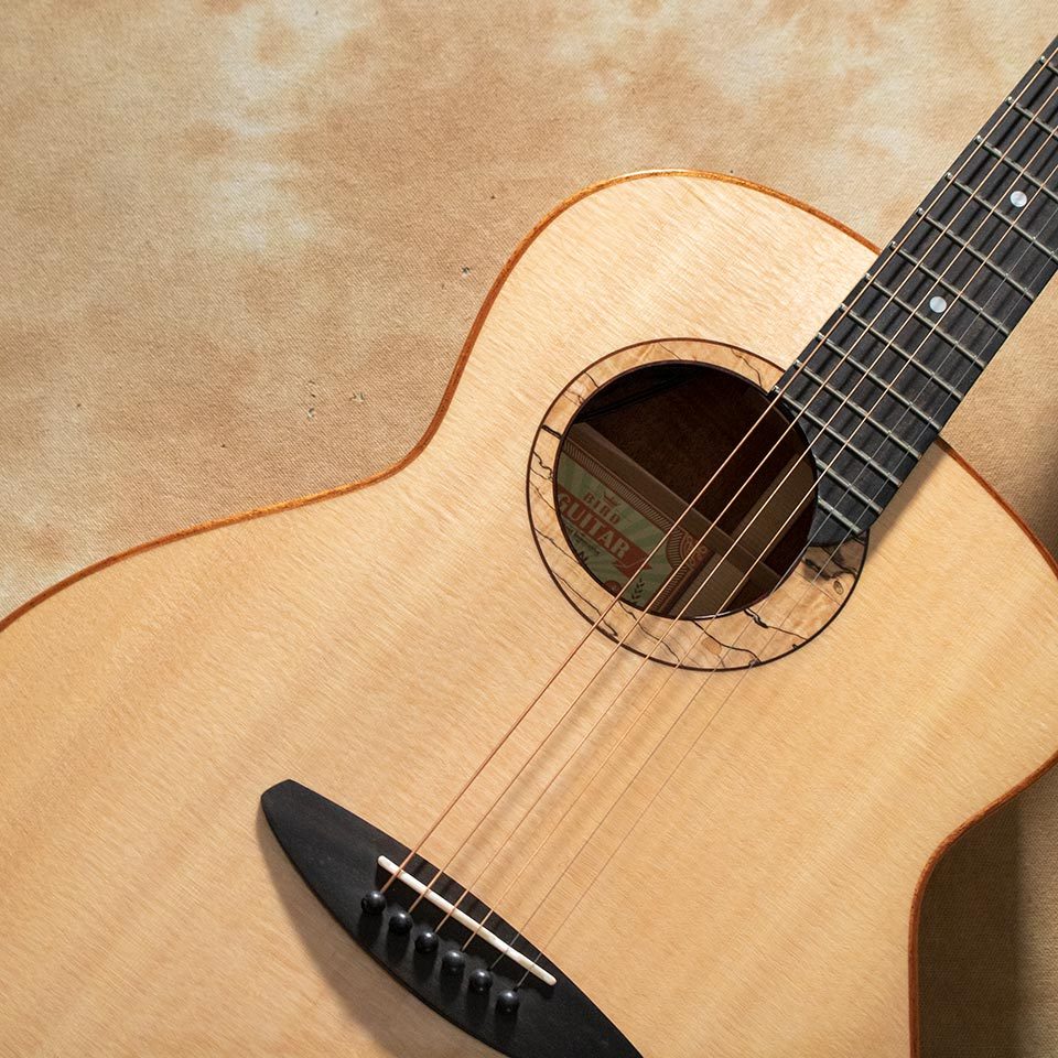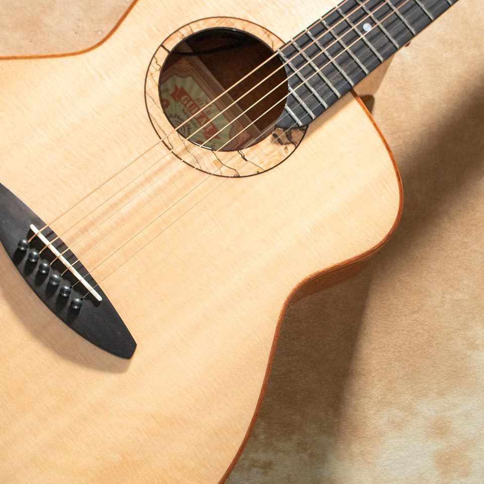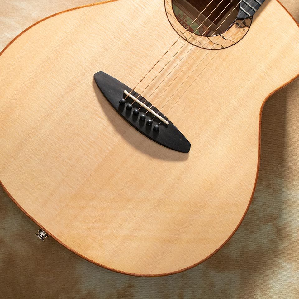 少し小ぶりなボディならではの繊細なサウンドから、少し厚めのボディと独自のブレイシング・サウンドホールから生み出される、サイズからは想像もできない迫力のあるサウンドまで縦横無尽な表現が魅力。