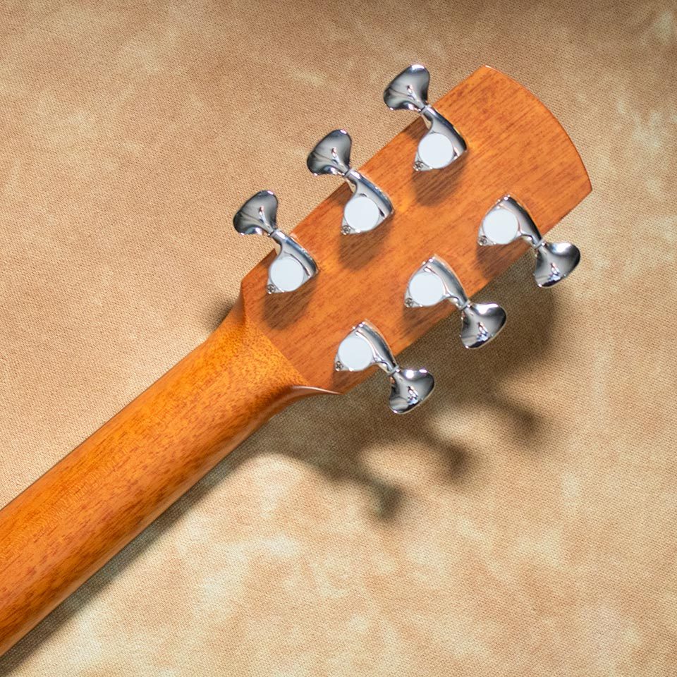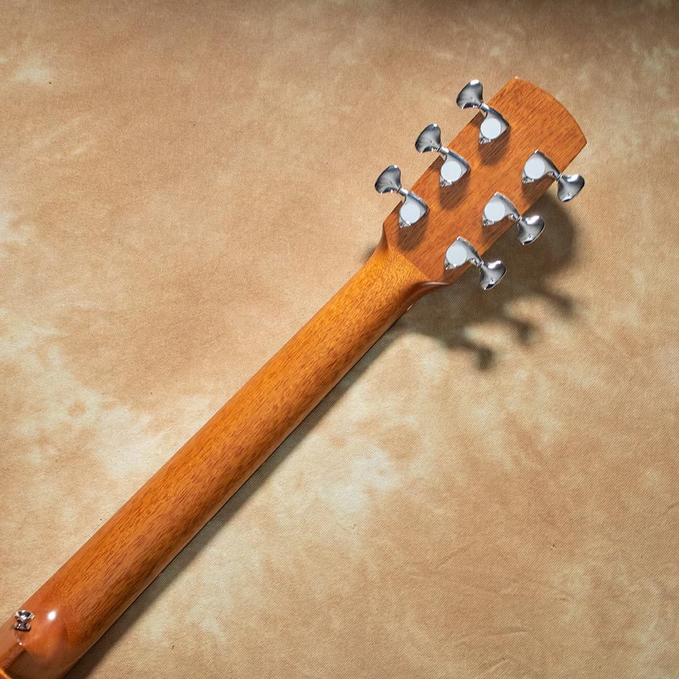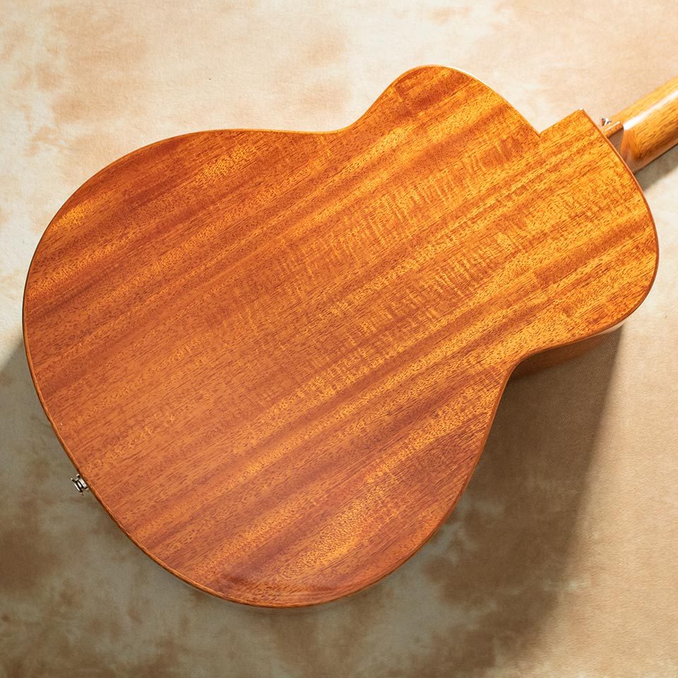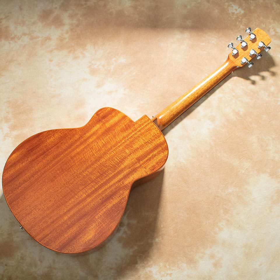 サイドバックにはアフリカンマホガニー単板を採用し、豊かな中音域とウォームなサウンドが特徴です。