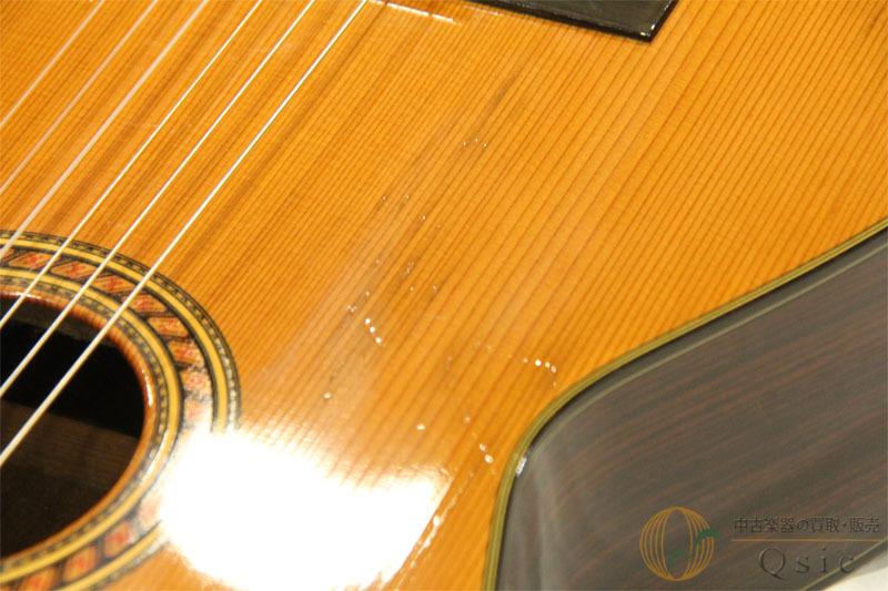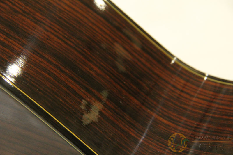 タバコ臭の染み付きがございます。ボディトップに打痕、ボディ演奏時下側に塗装の白濁がございます。ボディに割れなどはなくまだまだお使いいただけるお品でございます。