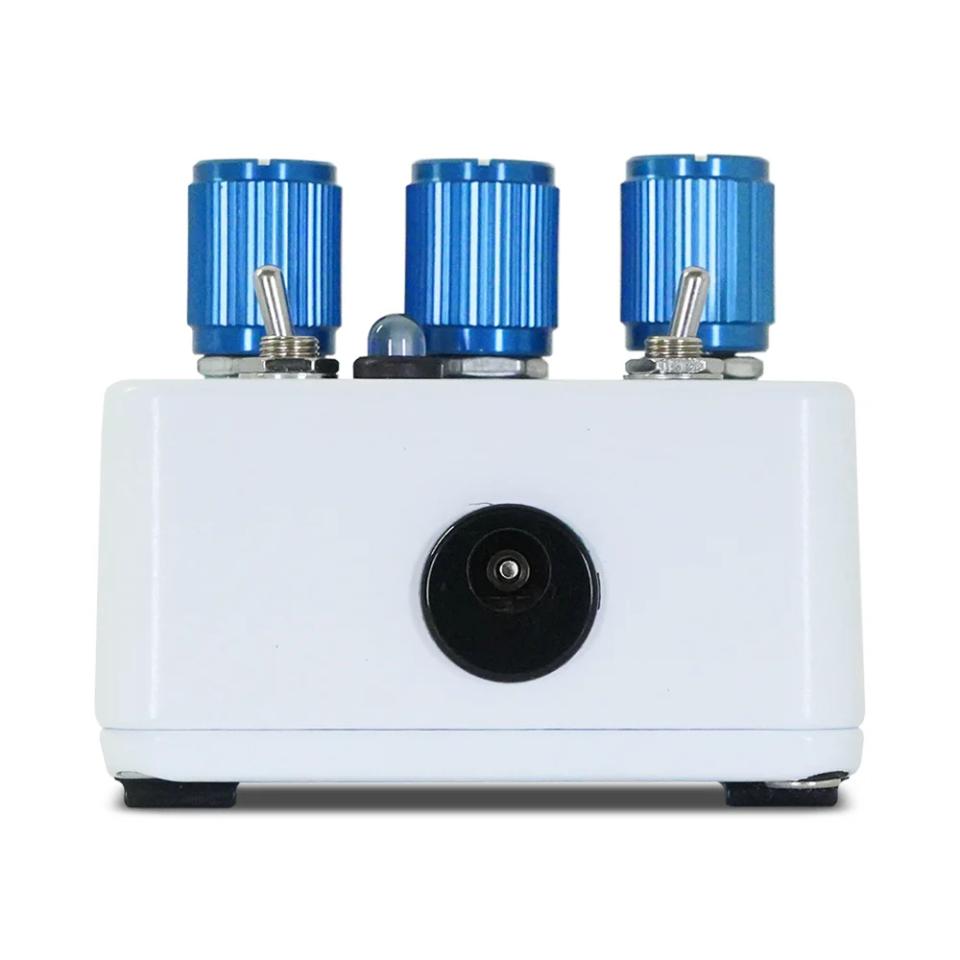 右の3Wayハーモニクス・ダイナミクススイッチで、ギターの出力やアンプに合わせてペダルのサウンドを調整できます。右側に設定するとローハーモニクス(ソフトオーバードライブ)で、クリアな音色と甘いトップトーン。中央位置では倍音が高くエッジが歪みが加わり、サステインが長く、アグレッシブなアッパーミドルとなります。左側に設定するとローダイナミクスで柔らかなアッパーミドルとヴィンテージコンプレッションが加わり、音量が少し下がります。