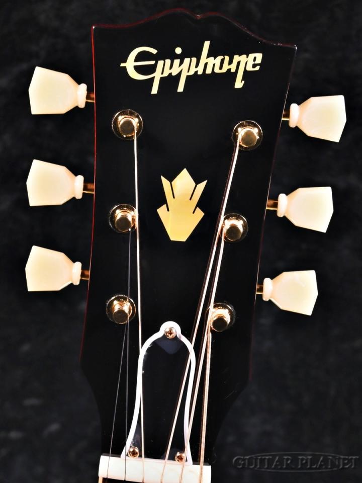 2層仕様のトラスロッドカバーが取り付けられ、エイジングされたマザー・オブ・パールによるエピフォン・ロゴとギブソンのクラウン・インレイが埋め込まれています。