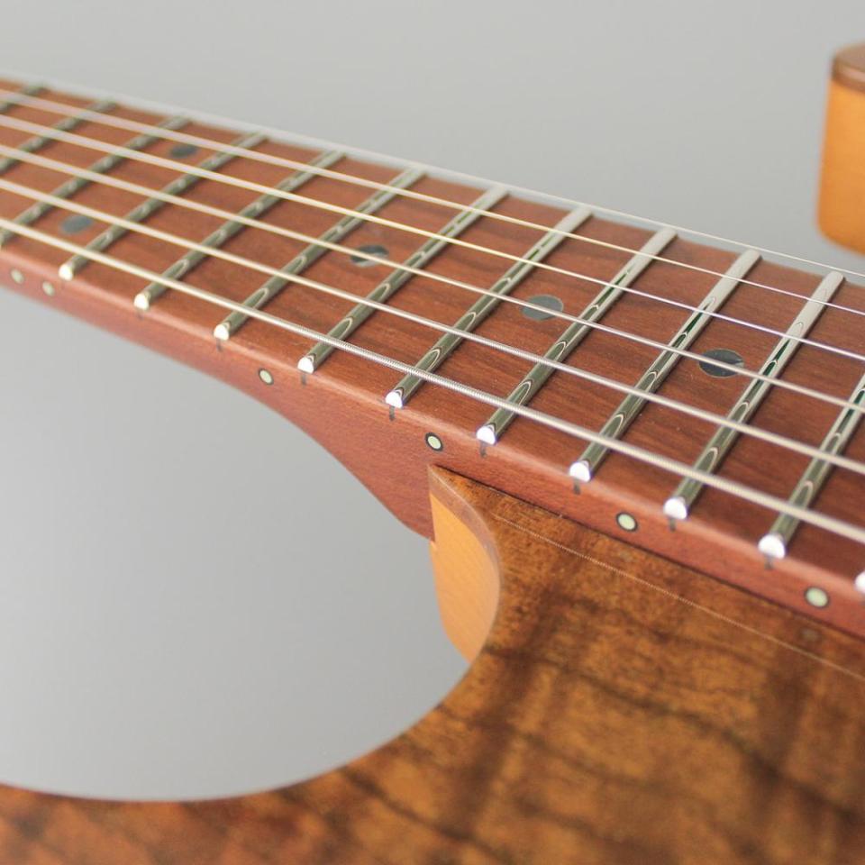 ハイポジションへのスムースなアクセスを約束するヒール形状「ムーンサルト・ヒール・カッタウェイ・ジョイント」、「コンパウンドラディアス指板」など、長年の経験で培われた技術を凝縮し作り上げられています。