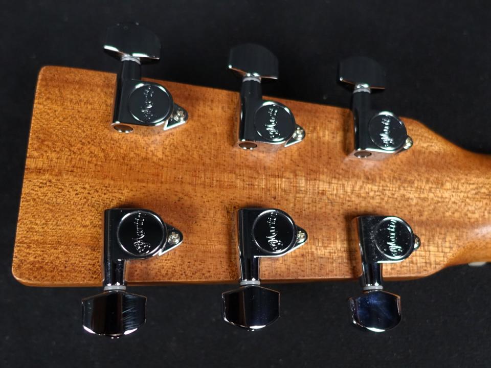 ボディ材にはサペリ材を採用、指板材にはリッチライトを採用。サウンドホールの周りがマザー・オブ・パール・パターンで仕上げられており、見た目も中身もグレードアップしている。