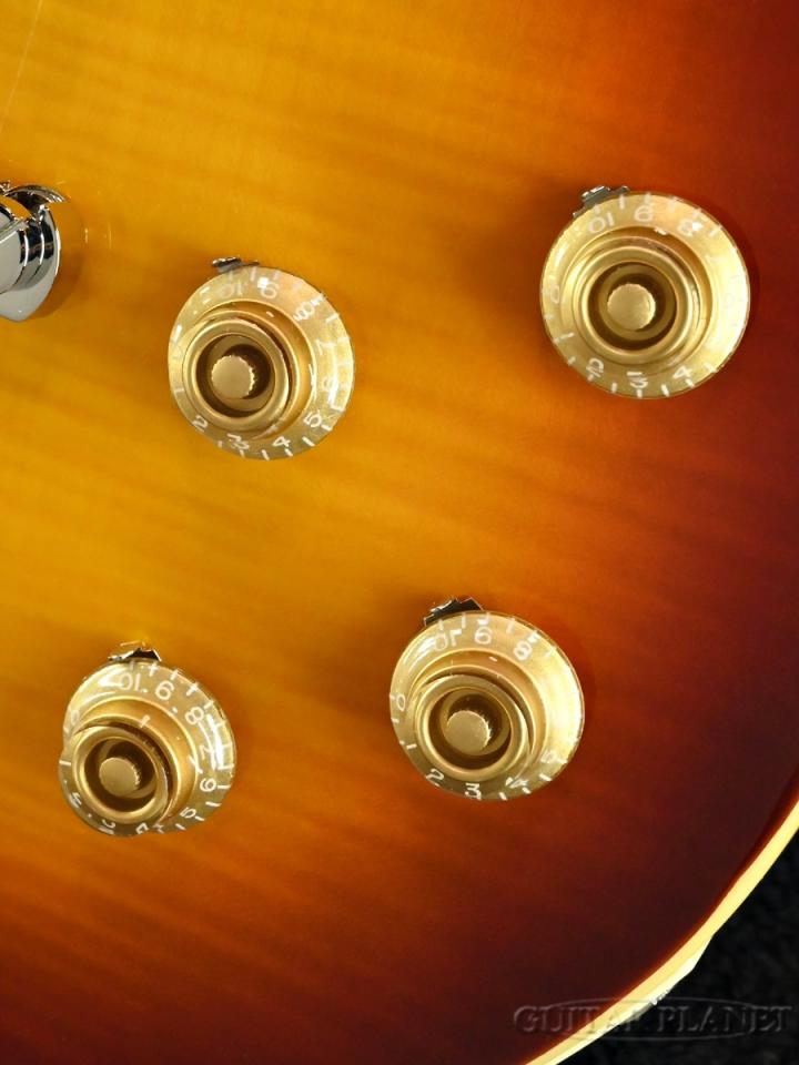 1959ラウンド・ミディアム・Cシェイプのネックにはバインディングが施され、ロング・ネック・テノン方式でボディにジョイントされています。ローレル指板にはクラシカルなディッシュ・インレイが施され、カラマズー・ヘッドストックにはヴィンテージ・デラックス・チューナーを搭載。電装系には定評のある2基のProbuckerハムバッカー・ピックアップ、ダイヤル・ポインタ付きのゴールド・トップハット・ノブを採用。