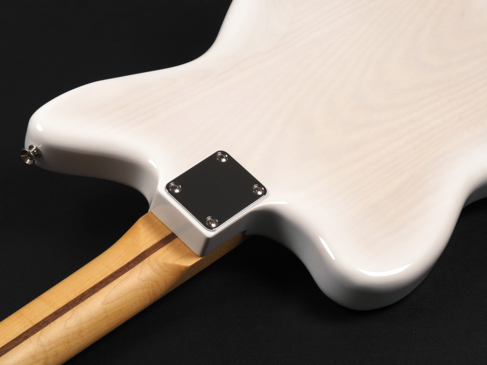 Telecasterでお馴染みのシースルーホワイトブロンドにてフィニッシュされており、木目の魅力を存分に味わえます。