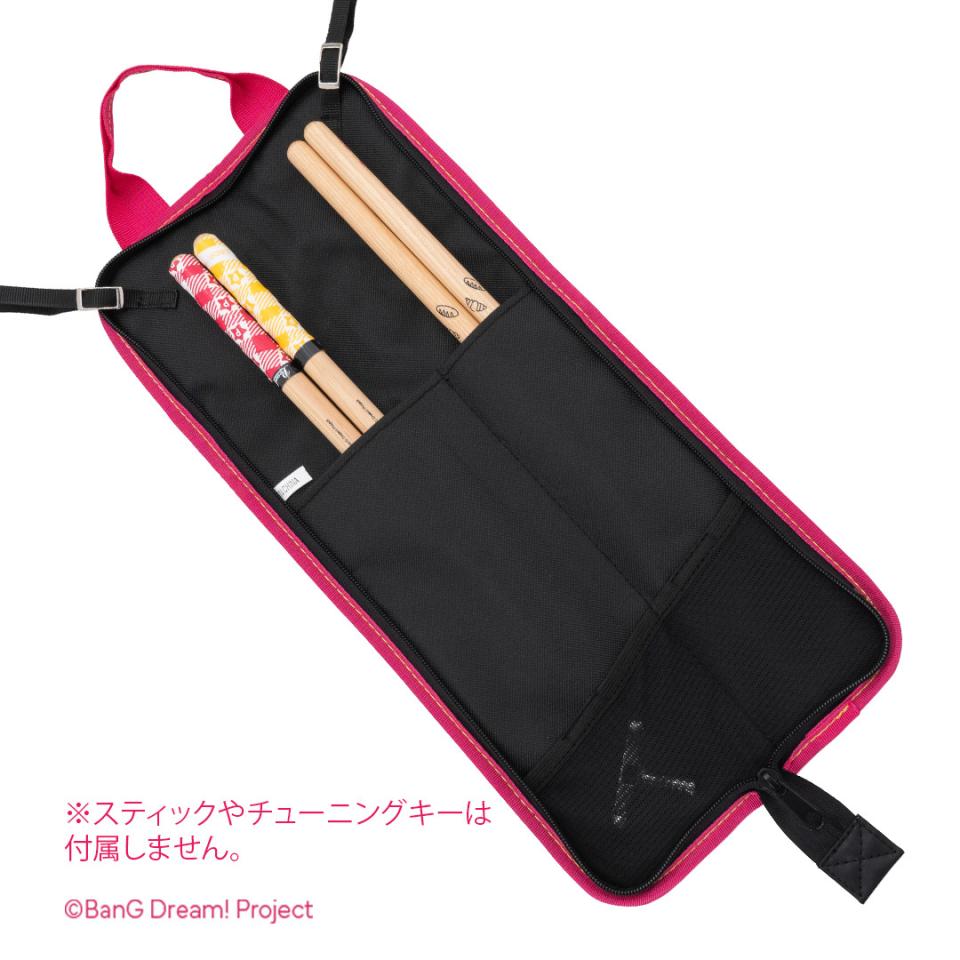 アニメ、ゲーム、コミック、声優によるリアルライブなど様々なメディアミックスを展開する次世代ガールズバンドプロジェクト「BanG Dream!」から、Poppin'Partyモデルのオリジナル・ドラムスティックバッグが登場。スティックを約3ペア収納可能で、チューニングキーを入れるポケットとフロアタムにかけるフック付。コンパクトな設計でドラムの演奏を妨げることなく任意の場所に配置が可能。取っ手付きで持ち運びも便利です。さらに、外側のクリアポケットに缶バッジやカードなどを入れてデコレーションできます。
