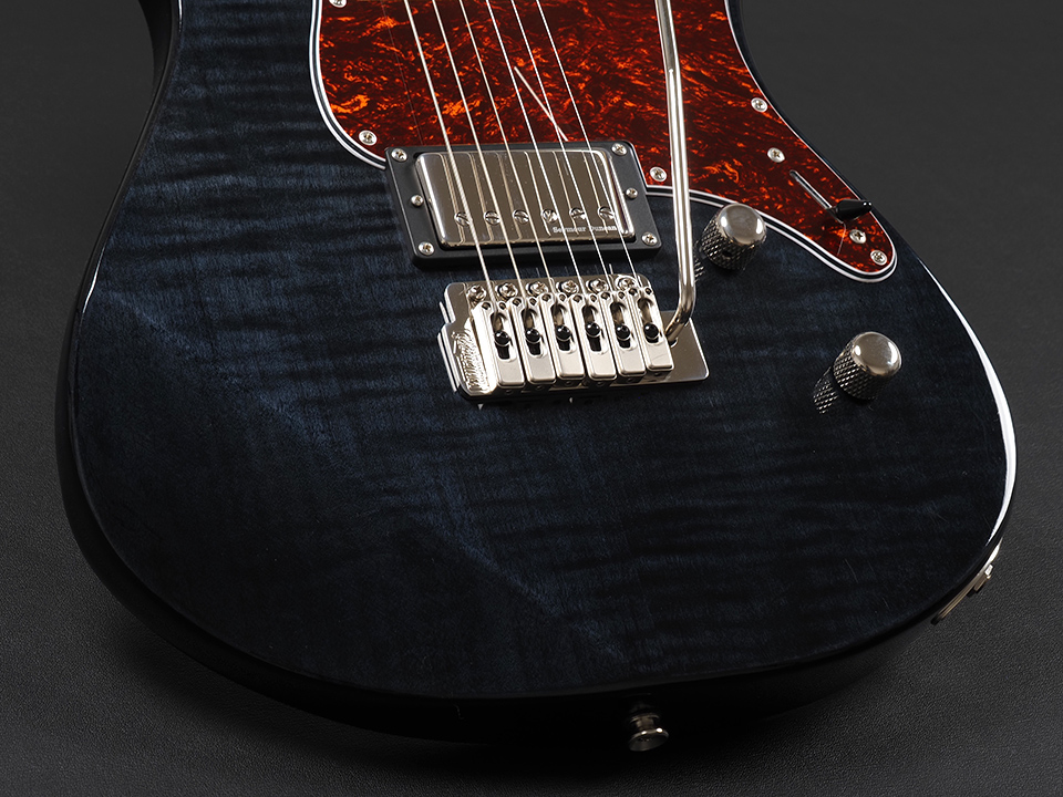 ボディトップには美しい杢目のフレイムメイプル突板があしらわれ、高級感のあるTranslucent Blackにてフィニッシュされています。