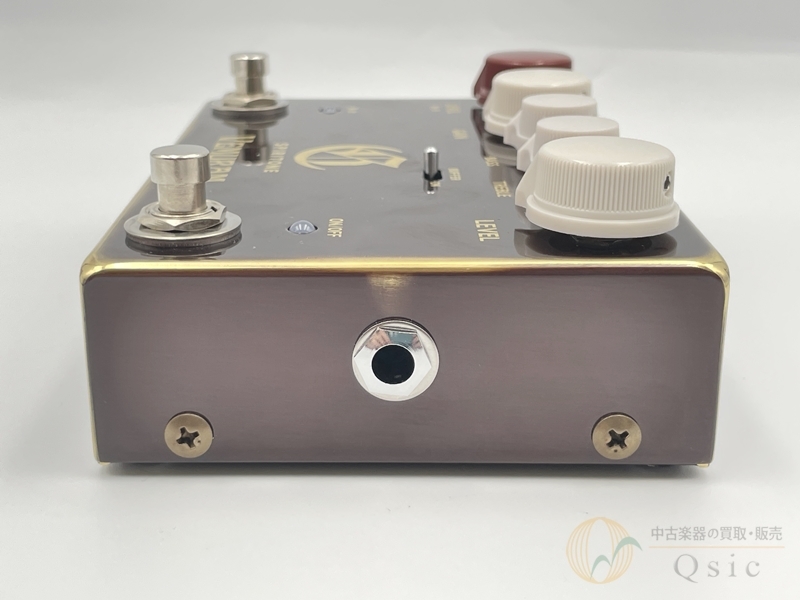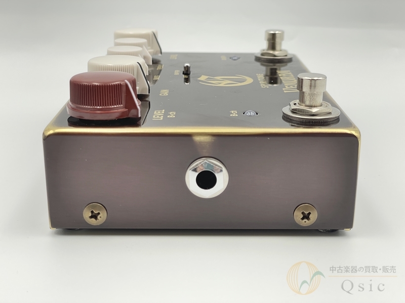 Klon系の滑らかな歪みに加え、A/Bの2チャンネル切替やSATトリマーなど柔軟な音作りが可能となっており、ブラス削り出し筐体と希少パーツによる高級感も魅力です。