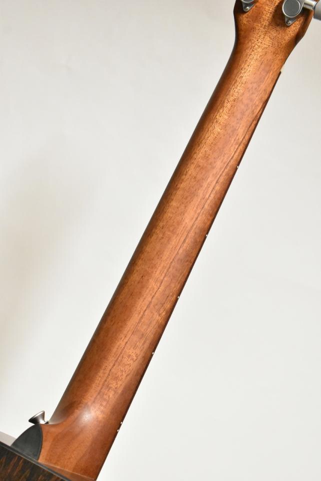 その上からエキゾチックな木目で個性のあるブラジリアンローズウッド材の柄のプリントがなされており、ボディは全体的にサテン仕上げでさらっとした触り心地です。