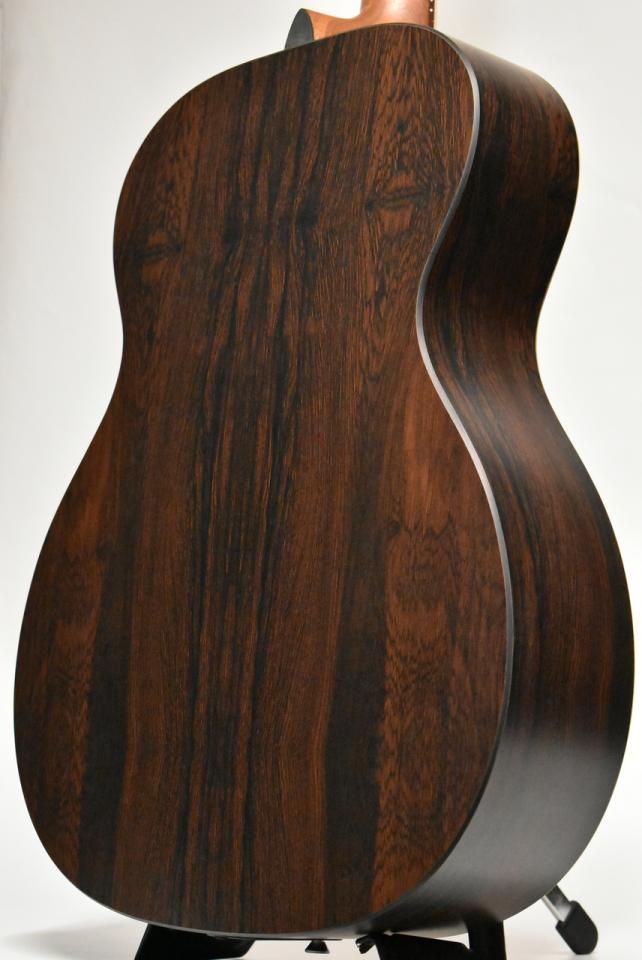 高音がクリアで繊細に鳴る000サイズが採用され、音の伸びが心地よく、ストロークは勿論ですがメロディも美しく響き、フィンガーピッキングでやさしく爪弾くスタイルが良く合います。