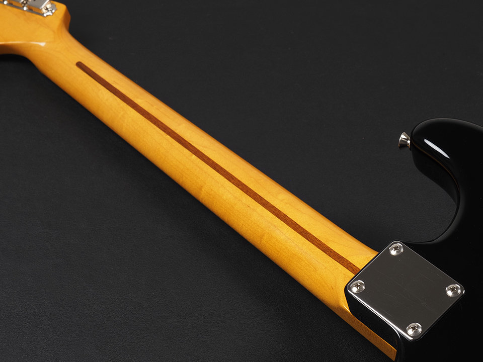 ネックは、1ピースメイプルならではのハリのある高域とレスポンスの良さが魅力。パーカッシブでキレのあるアタック感は、ストラトならではの歯切れの良いサウンドを際立たせます。