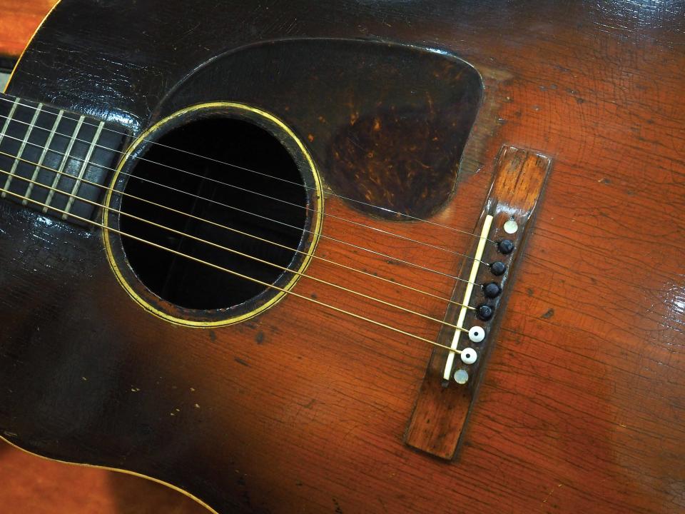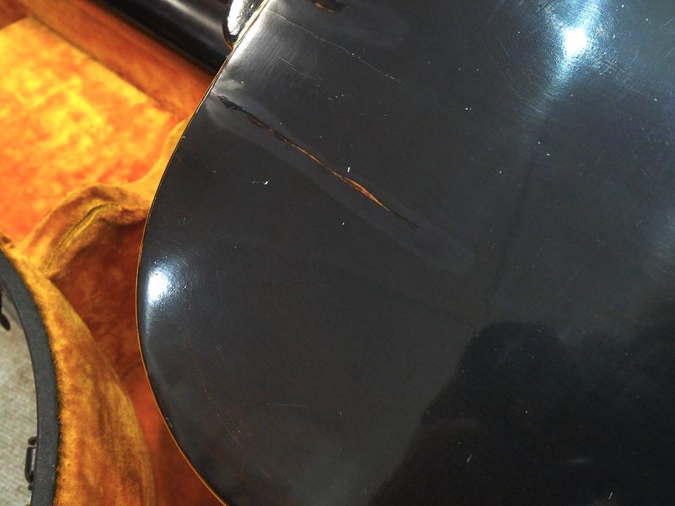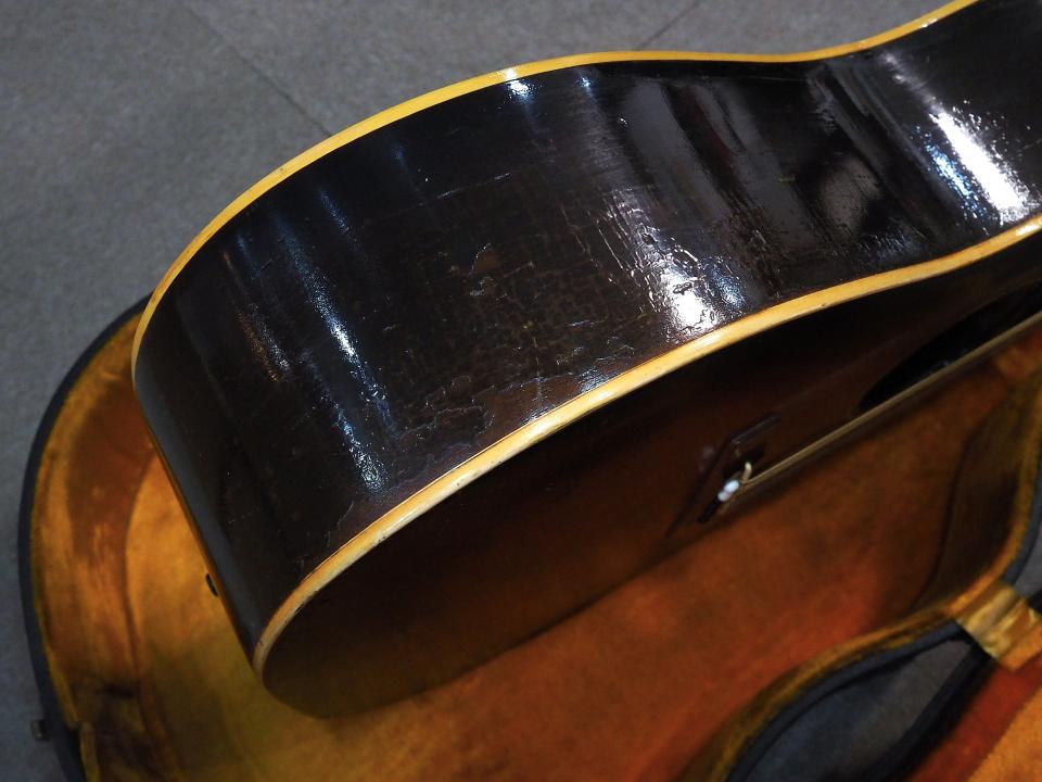 ボディーのいたるところに修理痕が見られ、深いウエザーチェックを纏った歴史的な1本。誰にでも弾きやすいギターであるとは言えませんが、演奏上の問題はありません。