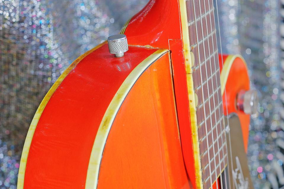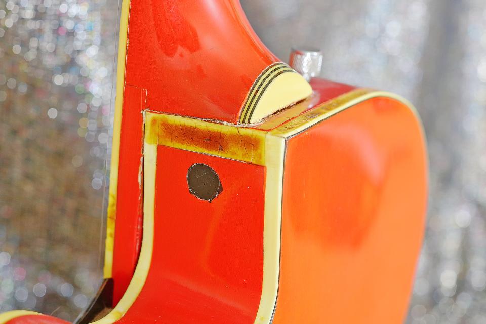 ネック、ボディ共にバインディングは各所にひび割れ劣化が見られますが、これはヴィンテージ・グレッチでは仕方のない事なのでご容赦ください。