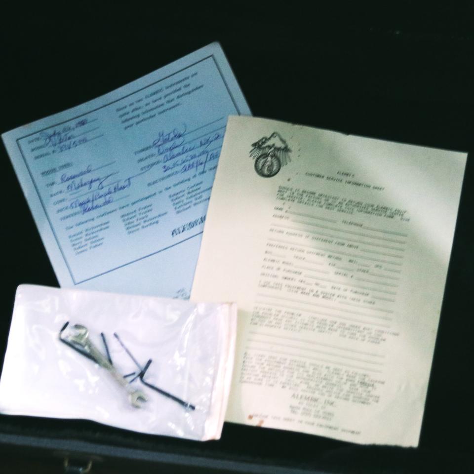 ALEMBIC(アレンビック):1970年代、米国西海岸を中心に急激に注目を浴びた新しいギターメーカー。当時、録音・PA面でミュージシャンのサポートをしていたロン・ウィッカーシャムの斬新な発想によりハイエンドギター(SSG,MSG,LSG等)/ハイエンドベース(SSB,MSB,LSB,SC-S,MK-S等)を展開。近年はALEMBIC JAPAN(アレンビックジャパン)として国産のAJシリーズなども存在する。(ALEMBIC/アレンビックのキーワード検索結果はこちら)