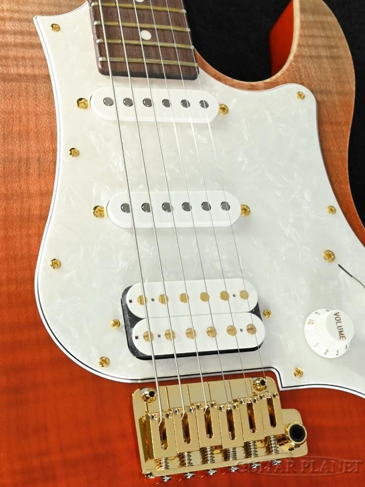ボディはフレイムメイプルのトップにアッシュバック、ネックは極上のクオーターソーンメイプルに良質なローズウッド材を配置。ピックアップにはフジゲンオリジナルモデルを採用しており、ヴィンテージタイプのサウンドキャラクターでありながら適度なゲインを持たせることで、現代音楽にもフィットする器用さを持ち合わせています。