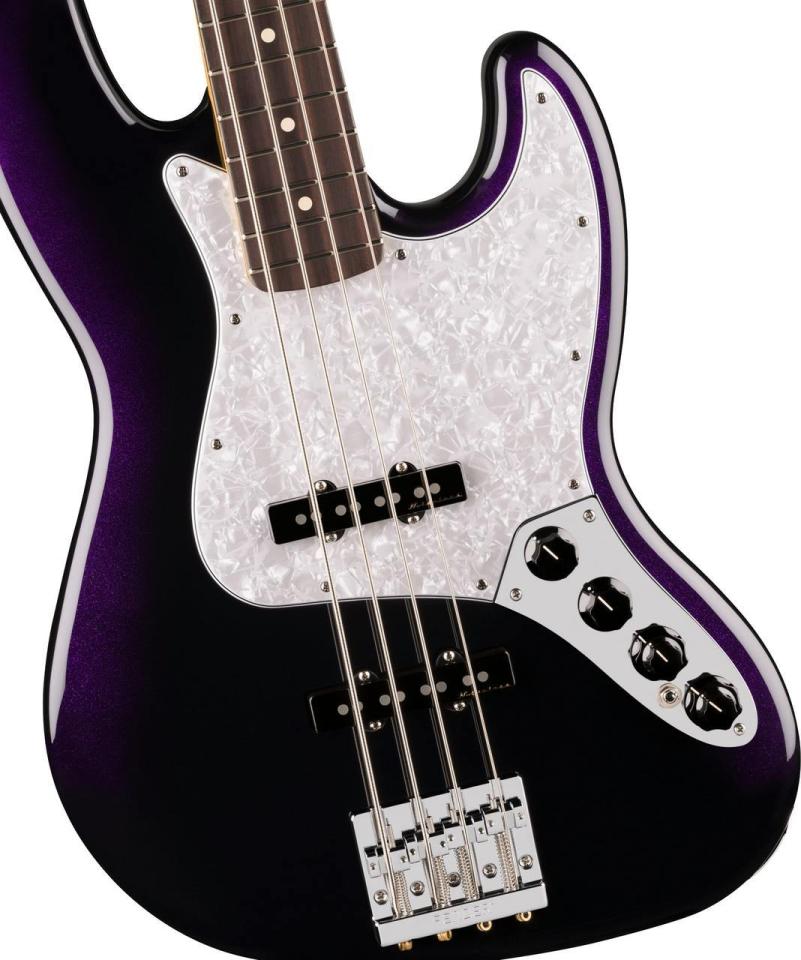 Player II Modified Active Jazz Bass?は、モダンプレイヤーを念頭に置いて設計されたクラシカルなベースです。Modern “C”ネックシェイプ、シルキーなサテンウレタンフィニッシュを施したネックバック、9.5インチラジアスのスラブローズウッドまたは1ピースメイプル指板、滑らかにロールオフ処理された指板エッジ、20本のミディアムジャンボフレットなど、ネックに注がれたすべてのディテールが、高速で流れるようなプレイアビリティをサポートします。アルダーボディはフェンダーらしいパンチのあるトーンが特徴で、様々な新しいカラーフィニッシュが用意されています。