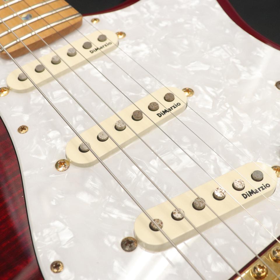 テクニカルなプレイを確実にサポートする厚みのあるネック、ジャンボフレット、Dimarzio社製カスタムピックアップなど、こだわりの仕様が満載です。