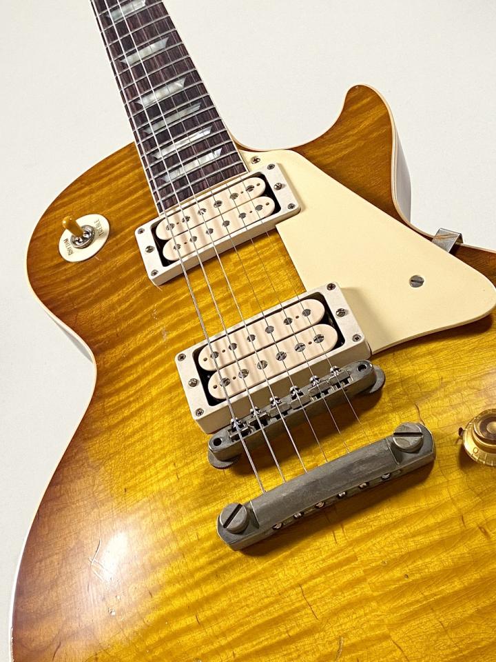 通常のカスタムショップ製59リイシューには、Custombucker Alnico 3 Unpottedが搭載されますが、本個体には2024年10月のGibson Factory TourにてGibson本社側と日本側とで交渉をした事で生まれたカスタムオーダーのカスタムバッカ―の採用に成功。