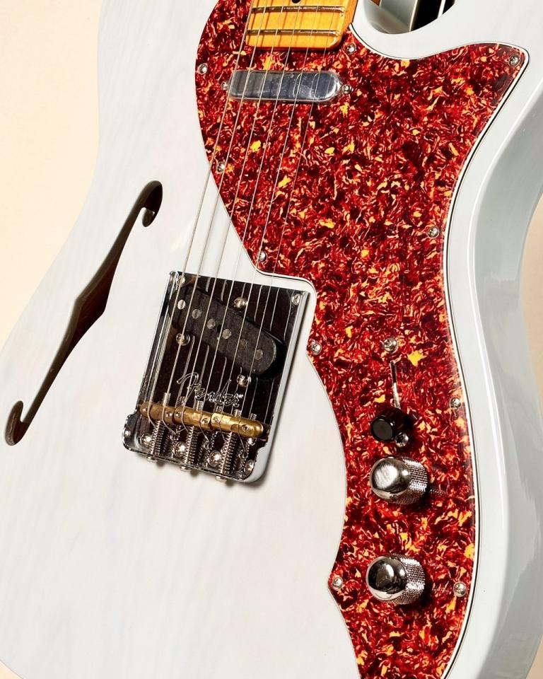 マテリアルはシンラインアッシュボディ、メイプルネック、メイプル指板と60年代のテレキャスターシンラインにのっとった王道的な組み合わせとなっています。