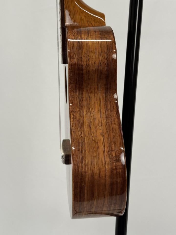 THCの型番はコンサートの定番シェイプです。ボディの材料には2Aグレードのハワイアンコアを使用しています。