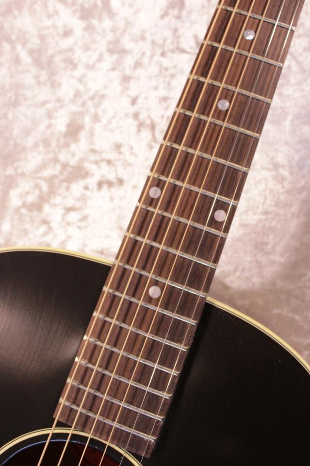 J-45よりも小ぶりで抱えやすいボディサイズにスプルーストップ、マホガニーのサイドバック、14フレットジョイント、ヘッドにはスクリプトロゴ、中央部にバナーロゴが入り、ネックはベースボールバットと形容される極太ネックの等の仕様を備えたLG-2は今やヴィンテージ市場でも年々高騰しておりますね。