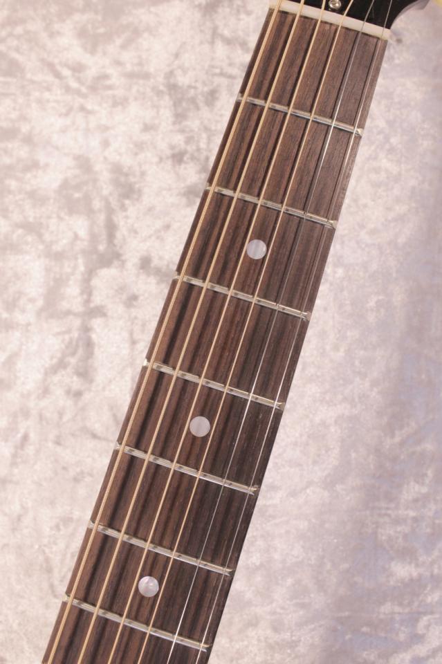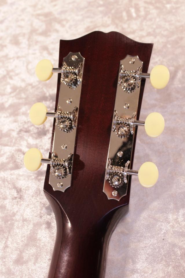 カスタムショップ製の本器はトップ材に戦前のギターに用いていたアディロンダックレッドスプルースを採用するにとどまらず、サーマリーエイジ加工も施しています。