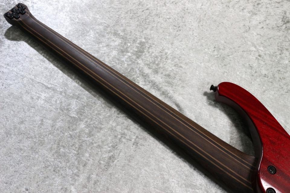 ヘッドレス構造バランスの良さと軽快な操作感、更にチェンバードボディによる軽量化と音響特性、輪郭のあるローB弦の低音、しっかりとしたアタックと分離感のある低音を奏でます。