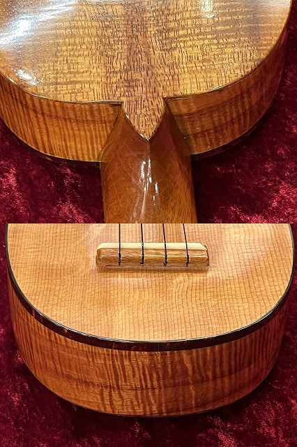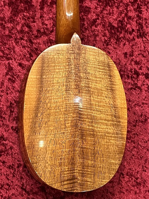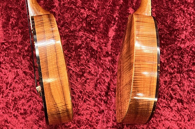 ハワイで制作されたとてもきれいなフレイムコア材をバックに使用した美しい個体です。
