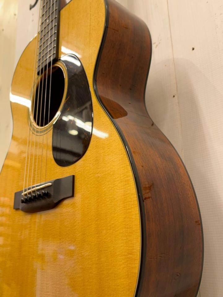 トリプルオーよりも一回り小さく絶妙に抱えやすいサイズ感と、コンパクトながら奥行きのあるサウンド、マホガニーのウッディーで柔らかい音色は耳に心地よく、ついつい時間を忘れてつま弾きたくなります。
