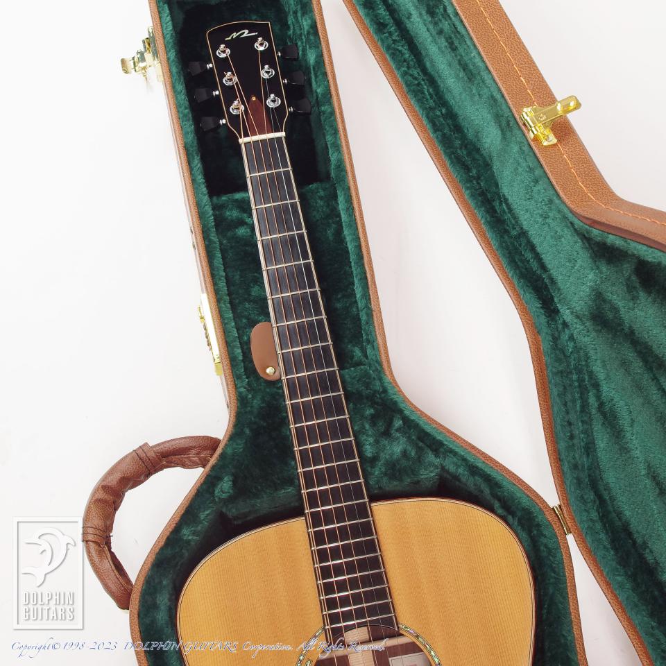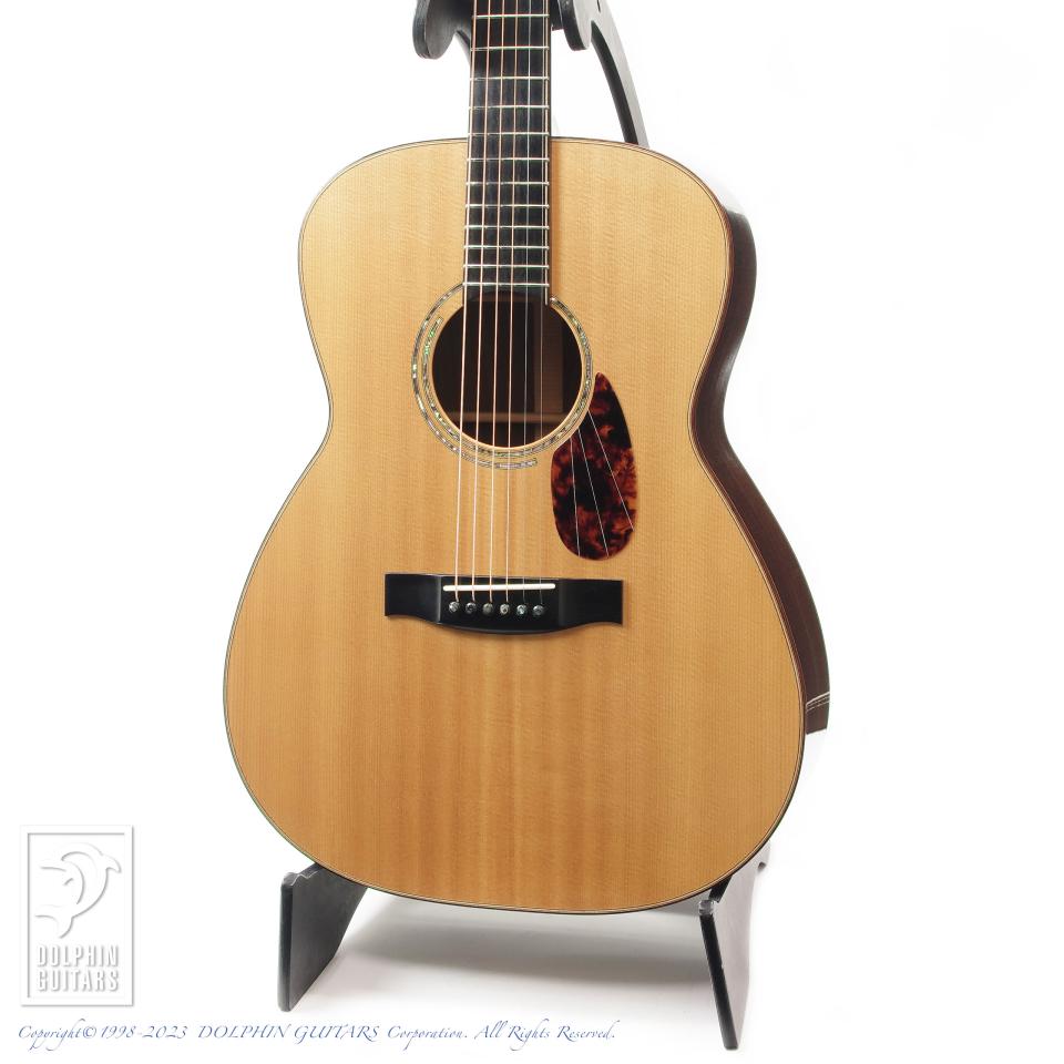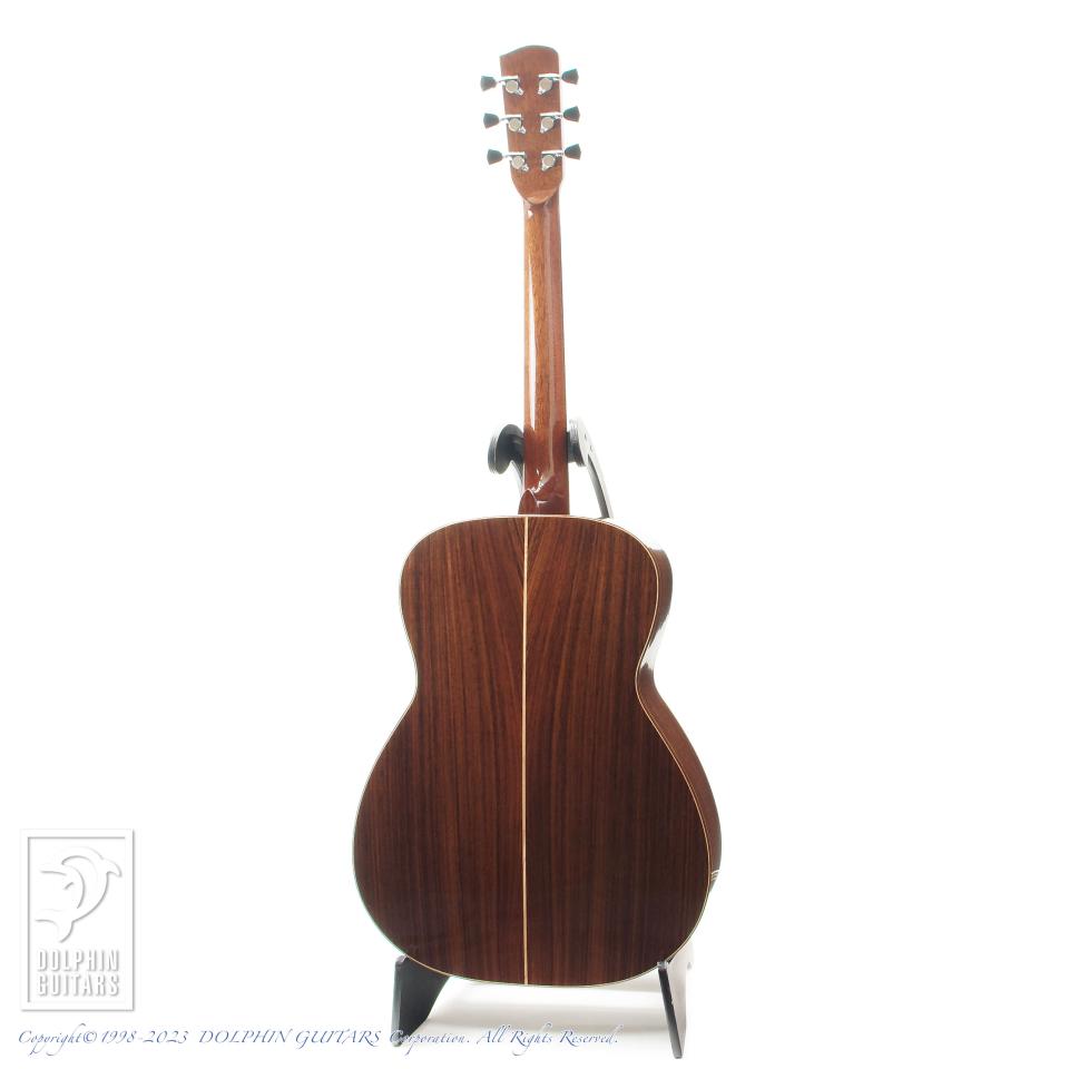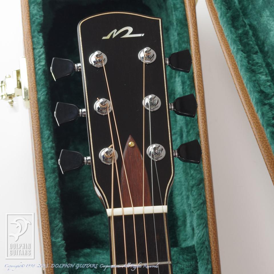 一般的なOMを最大厚で約15mmほど厚胴したボディサイズであり、低音の深みや音域の広さを感じさせるサウンドです。ピッキングの強弱もしっかりと反応し、豊かな表現力を持つ個体で、抜群な鳴りの良さからテンション感も適度な柔らかさを感じるほどです。日高氏はプリウォーマーティンスタイルのアメリカンサウンドの製作も得意とし、本器もベースとなる音作りはプリウォースタイルですが、日高氏のアレンジを加えたブレイスパターンとなります。