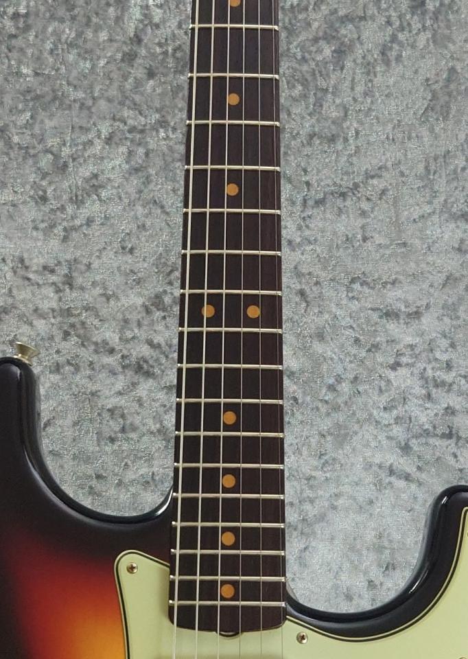 ネックまわりのスペックは、やや肉厚なシェイプの[63 Style Strat"C"](1st .810 12th .970)となっています。