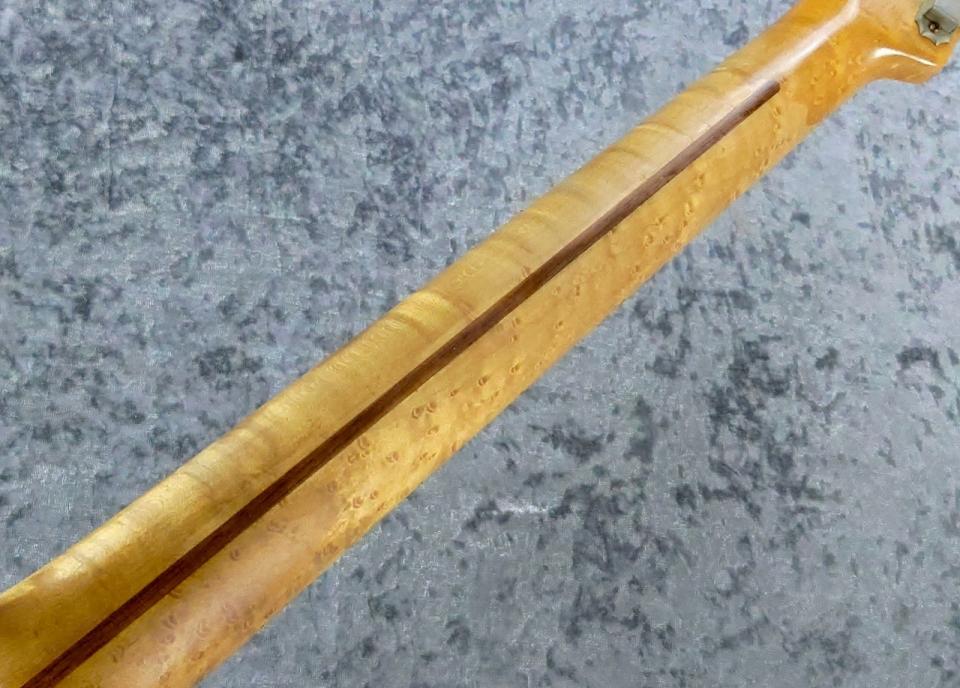 トータル重量約3.2kgと非常に軽量なバランスで、ネックにはバーズアイ・フレイムが絶妙なバランスで浮き出ていることからも、