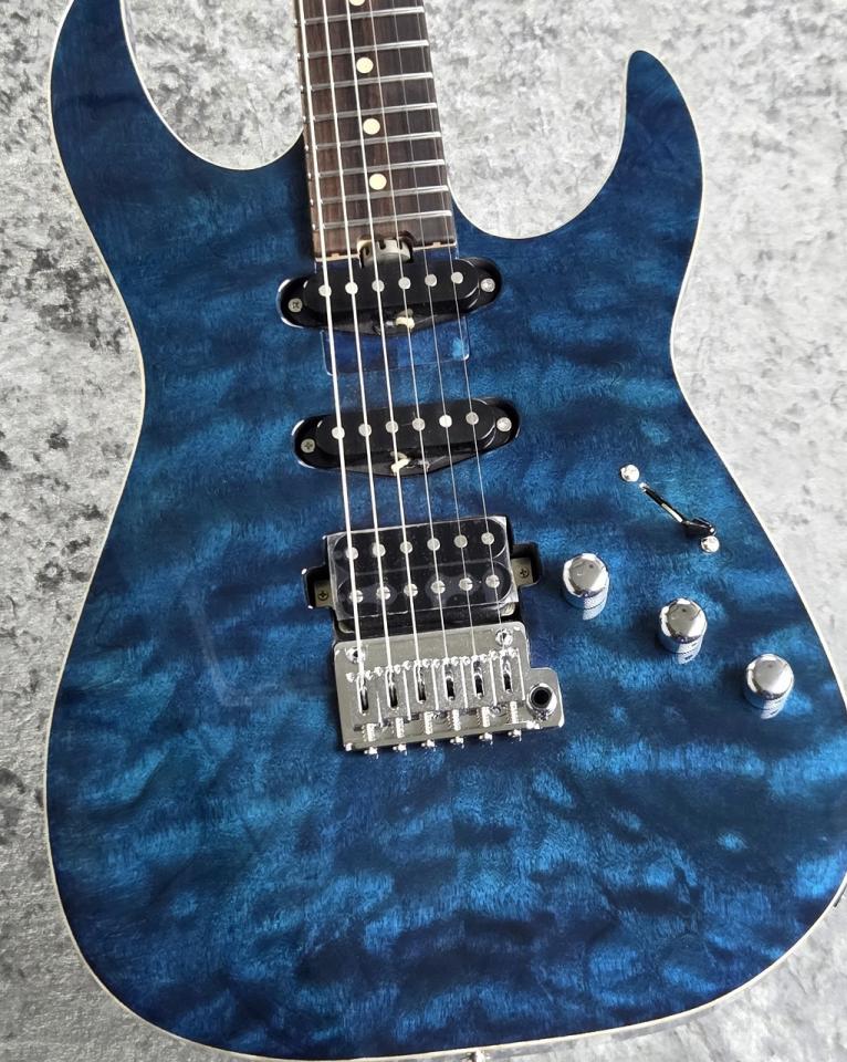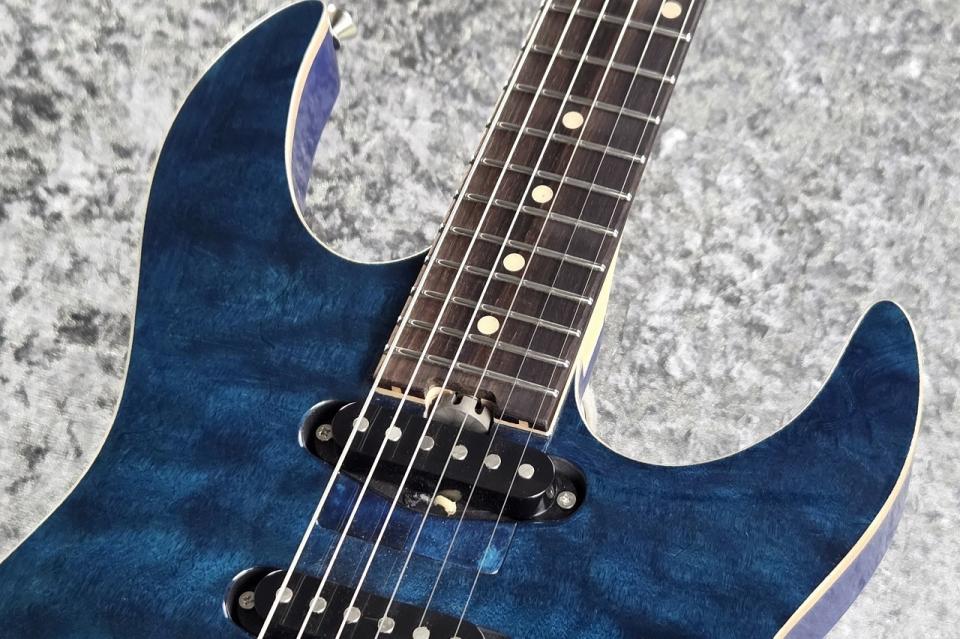 ピックアップにはメーカーオリジナルのモデルの中で最もハイパワーな"Modern"タイプのSSHコンビネーションを採用しており、