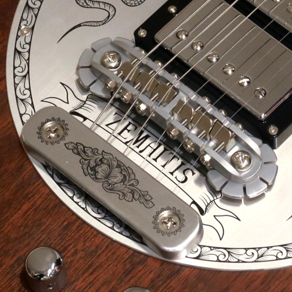 ゼマイティス・オリジナルのアルミ合金を使用したブリッジ&テイルピースを搭載し、ゼマイティス独自のトーンを生み出す要素となっています。