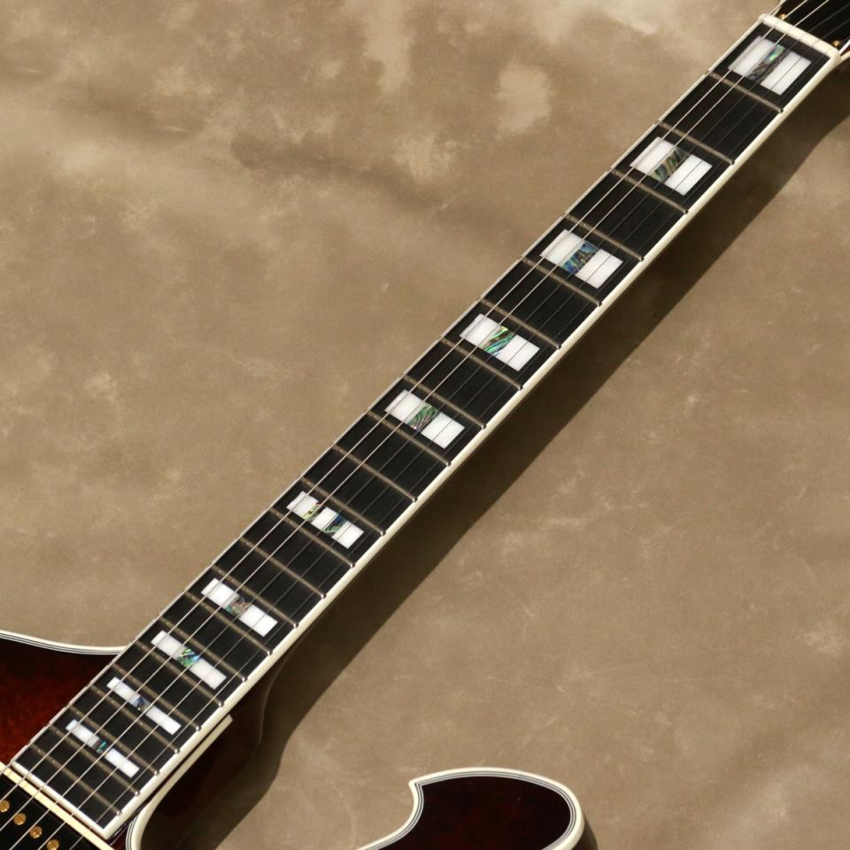 フィンガーボードはエボニーで、アバロンとパーロイドを組み合わせたブロック・ポジション・マークは高級感を演出します。