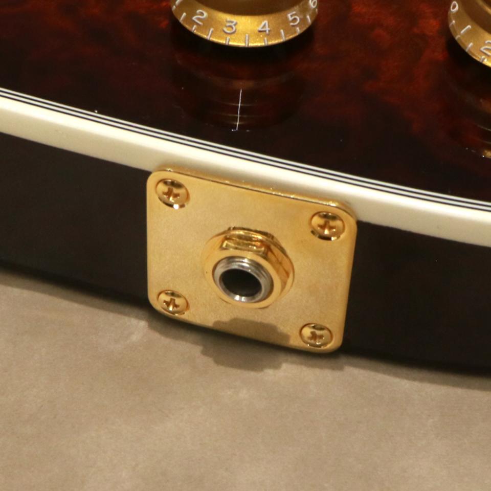 美しい木目のキルテッド・マホガニー・トップ&マホガニー・バック材を用いたボディーは、センター位置で40mm厚となっており1弦側と6弦側それぞれ外側に向かうにつれ徐々に薄くなるトップ・アーチ形状を採用しています。