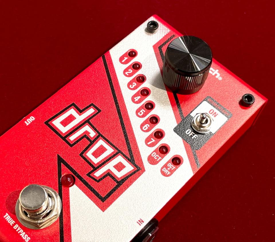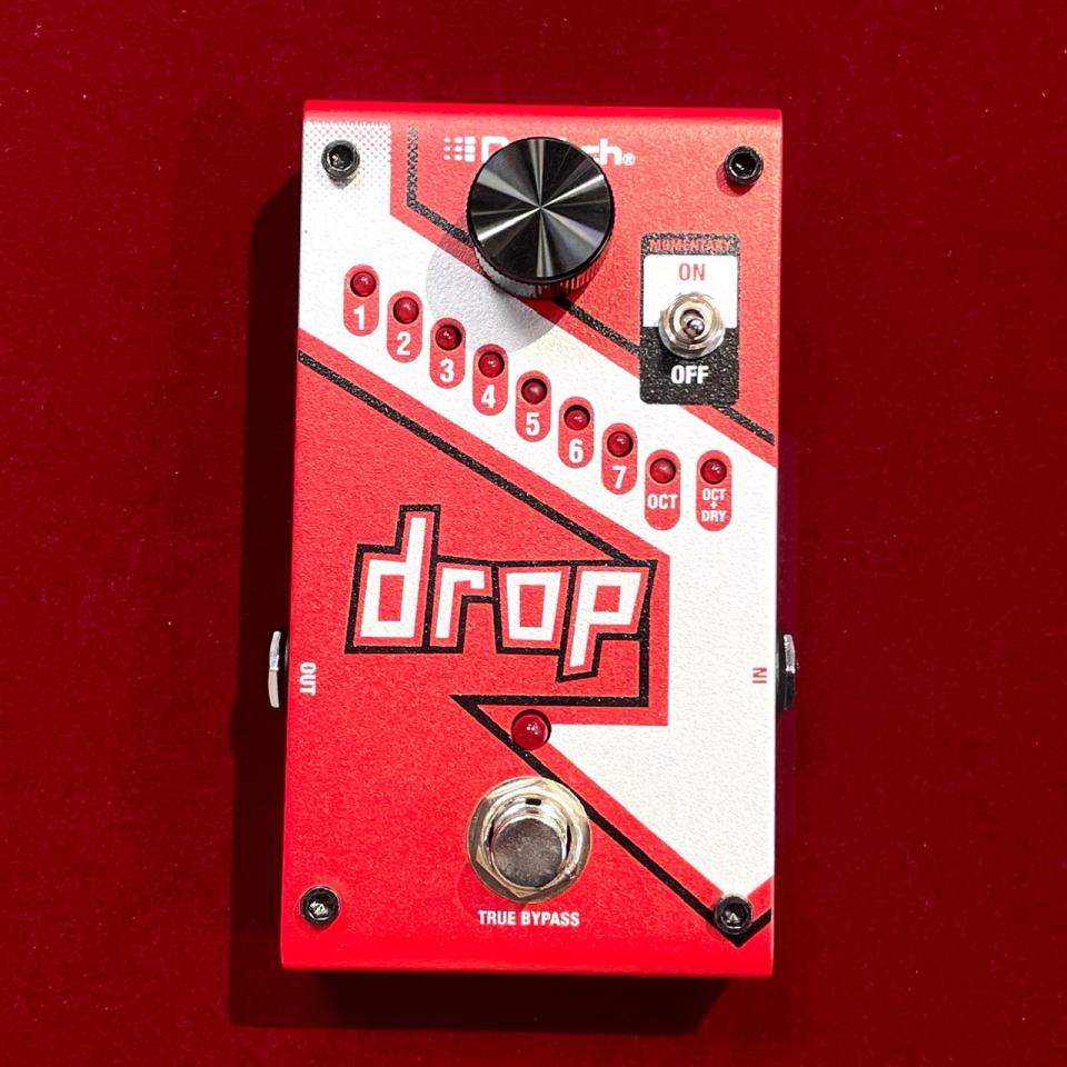この"Drop"(ドロップ)は、ギター本体のチューニングを変更することなく、半音ステップで最大1オクターブ下までのダウン・チューニングを可能にするポリフォニック・ピッチシフター!!