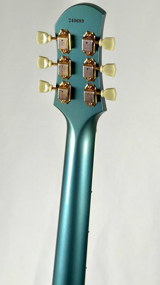 ボディトップとヘッドにはバインディングが施され、ハードウェアにはゴールドパーツの採用、そしてボディカラーには退色し緑がかった様子が再現されたペルハムブルーが採用され、ゴージャス且つスタイリッシュなルックスが目を惹きます。
