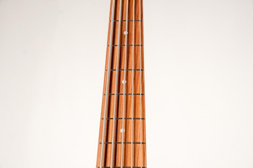 ネックにはローステッドメイプル、指板にはモラド(ボリビア・ローズウッド)を使用しており、すっきりと立ちの良い出音に一役買っております。