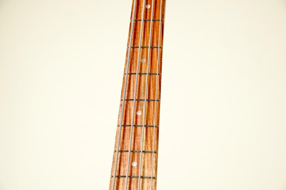 アルダーボディにメイプルネック、モラド(ボリビア・ローズウッド)指板と、基本的にはトラッドなJBタイプを踏襲した仕様となっております。