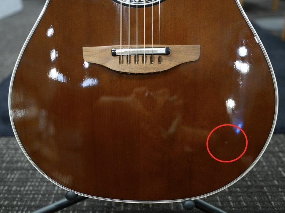 世界的に有名なエレアコブランドであるOvationですが、保管状況によっては、ネックの元浮きやブリッジ付近の