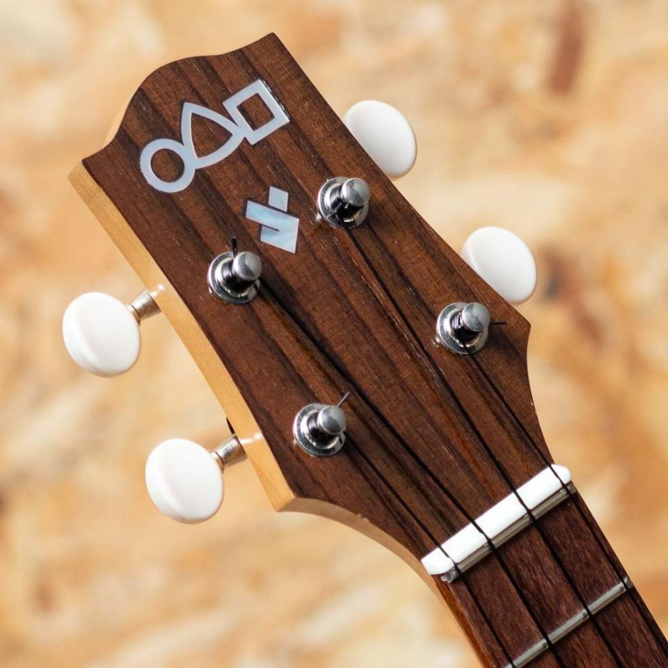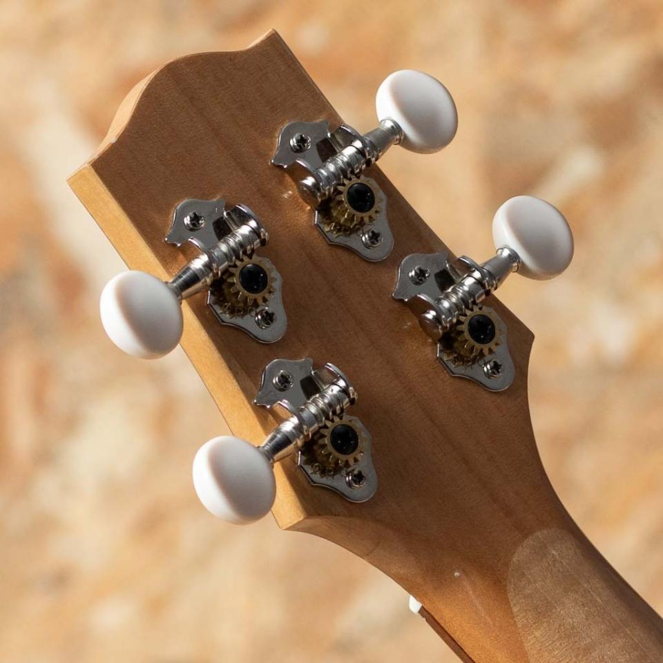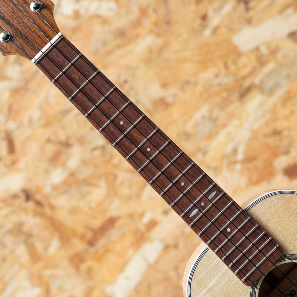 ・占部ウクレレ特有のやや薄めで握り易いネックシェイプ、0フレット仕様でローポジションの弾き易さは格別