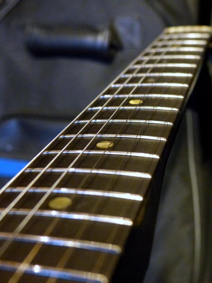 フレットの磨り合わせは多少に関わらず全ての楽器に施していますので、デコボコなど一切無く、ビビリ、ツマリなどはありません。