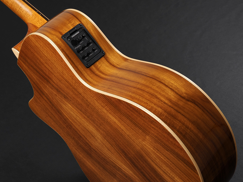 ピックアップシステムには定評ある"Fishman Presys+"を搭載しており、ライブやレコーディングでも即戦力。繊細なフィンガースタイルから力強いストロークまで、幅広いスタイルに応えてくれます。
